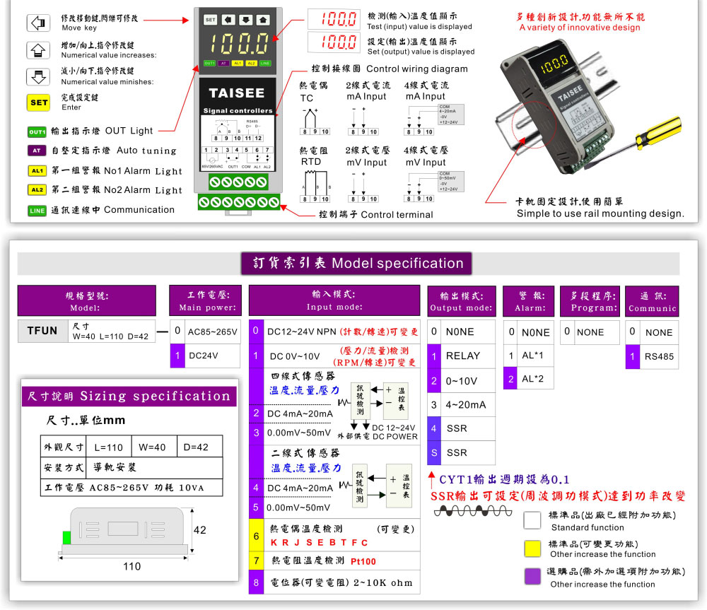 溫度.濕度.流量.各種訊號 (485通訊功能) (多種輸入模式設(shè)定) 比例式(模擬訊號)輸出 盤內(nèi)卡軌式