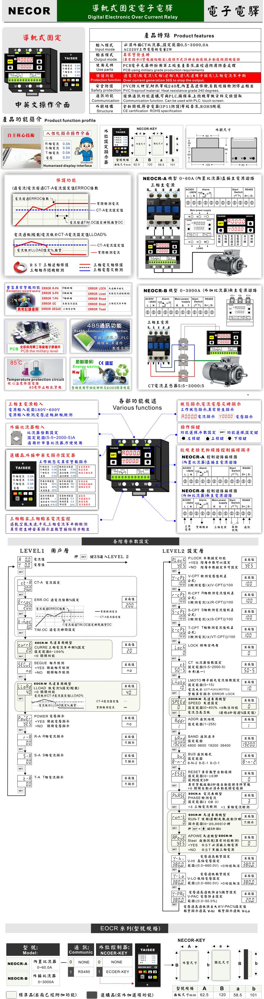 輸入模式:外接CT比流器 設定范圍0.5~3000A